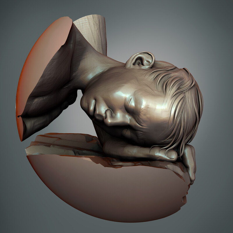 The human characters were sculpted in Zbrush, the ledge was created using JRO's awesome tools, and the still images were rendered in Keyshot.
