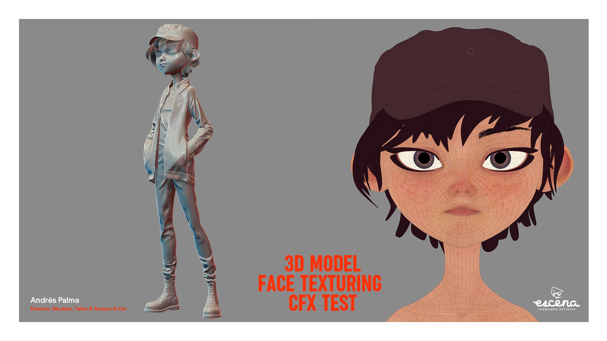 Progress images related to the creation of Lucía for the short film Shimmer. I handled the sculpting, retopologizing, tailoring, face texturing and general direction of the project. The other artists that worked on this asset were: