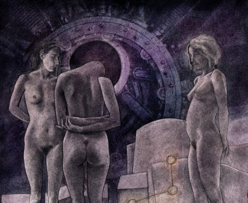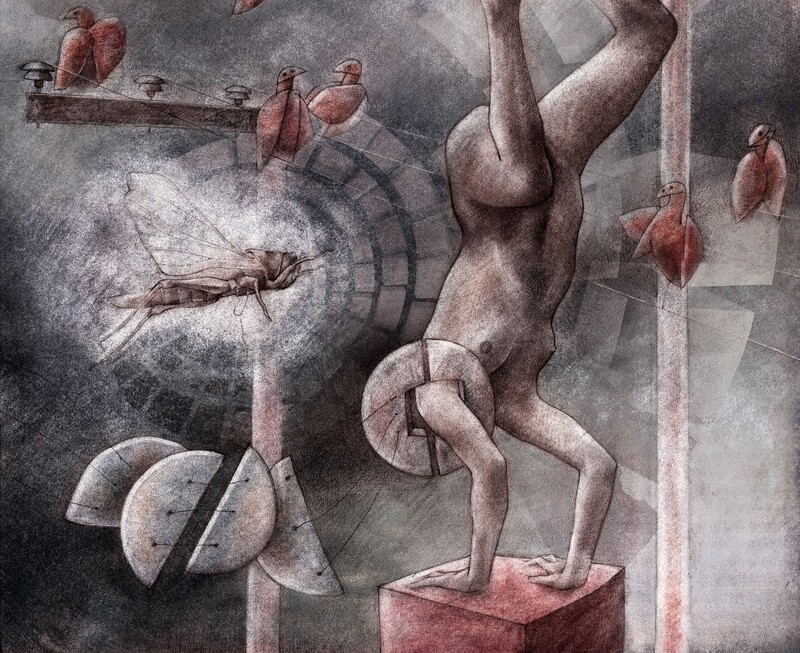 Old drawing made using pencils, pastels, sanguines and cigarette ashes.