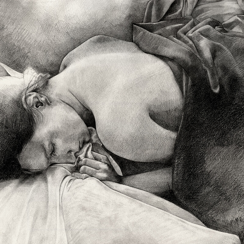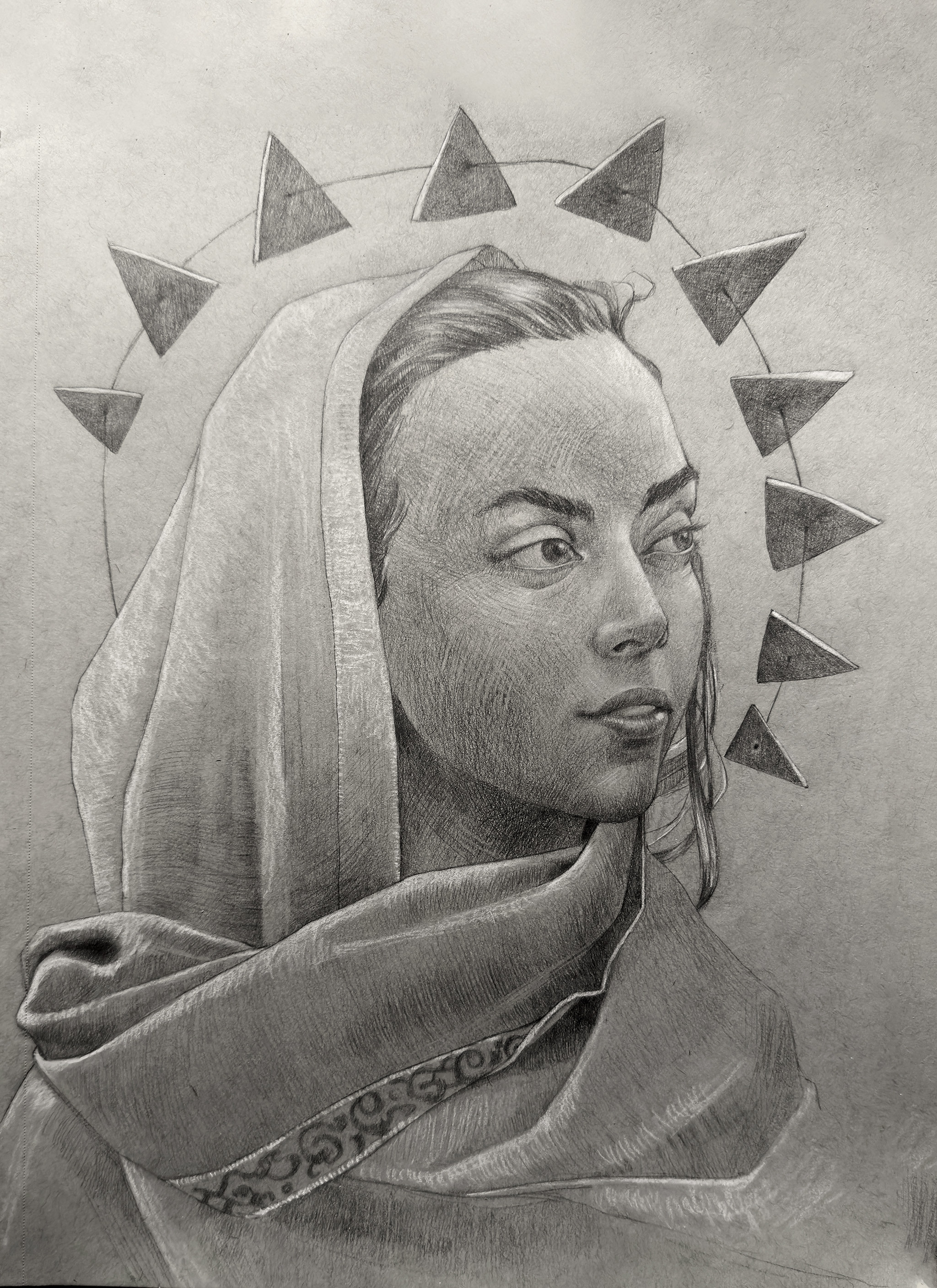 A portrait made as a birthday gift for my partner Majo while she was travelling in India, using pencils and cigarette ashes.