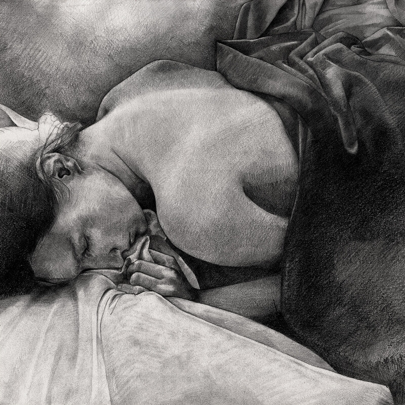 A portrait made as a birthday gift for my partner Majo while she was travelling in India, using pencils and cigarette ashes.