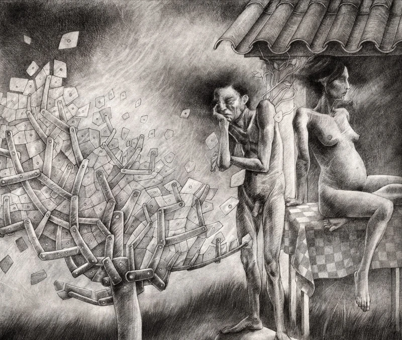 Inspired from from a Ted Hughes poem I love that's a part of his Eat Crow poem collection. The poem is called Lovesong and the drawing's title is taken from its conclusion: https://allpoetry.com/poem/8495361-Lovesong-by-Ted-Hughes.